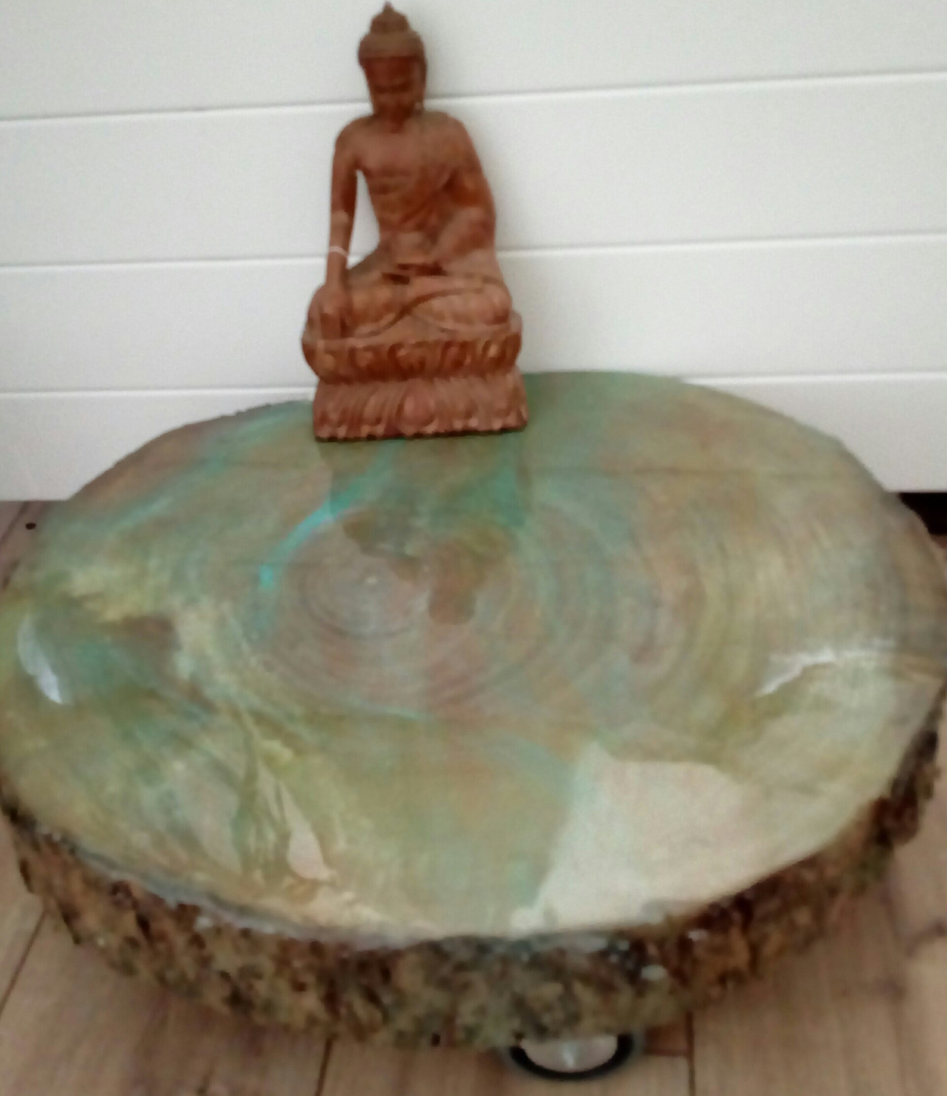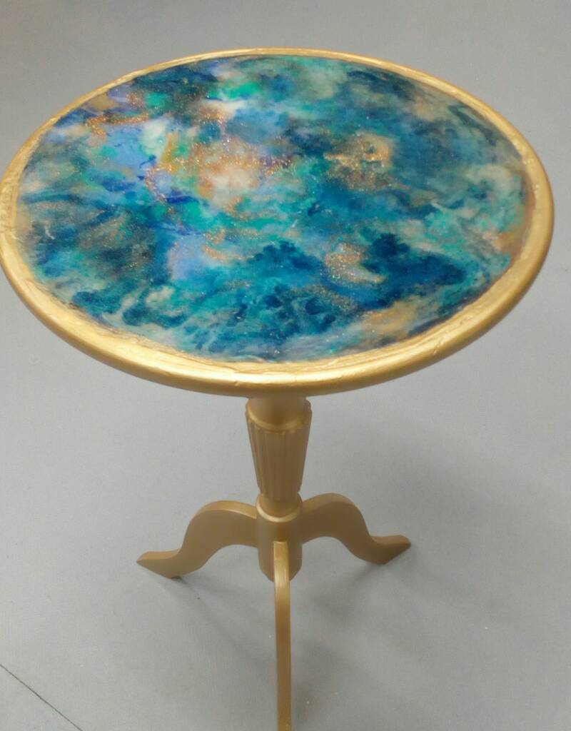 Resin Art is zeer geschikt om de bovenkant van bijzettafels te bewerken.